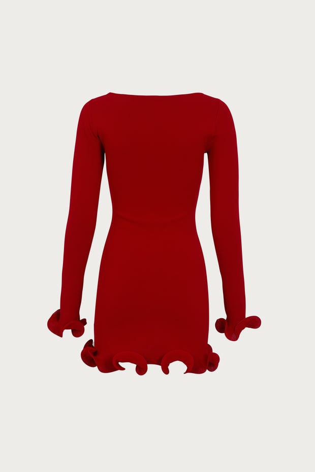 SAME - RUFFLE HEM MINI DRESS RED (SALE)