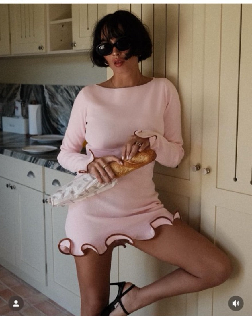 The Ruffle Hem Mini Dress runs big, if you are in between sizes, please size down.